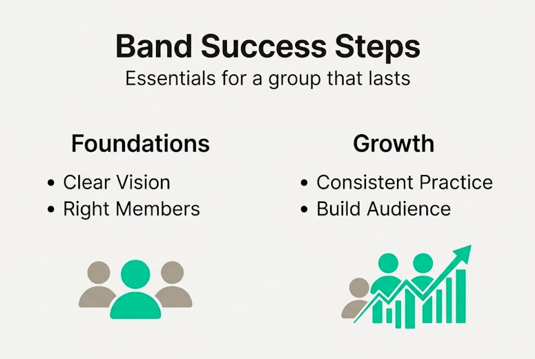 Starting a music group sounds exciting until reality hits. Rehearsals fall apart, members lose interest, and creative differences pull people in opposite directions. Many musicians pour weeks of energy into building something, only to watch it dissolve before the first gig. The difference between groups that make it and those that don't rarely comes down to talent. It almost always comes down to preparation, communication, and a shared sense of purpose. This guide walks you through every stage, from defining your sound to booking your first shows, so you can build a group that actually sticks.