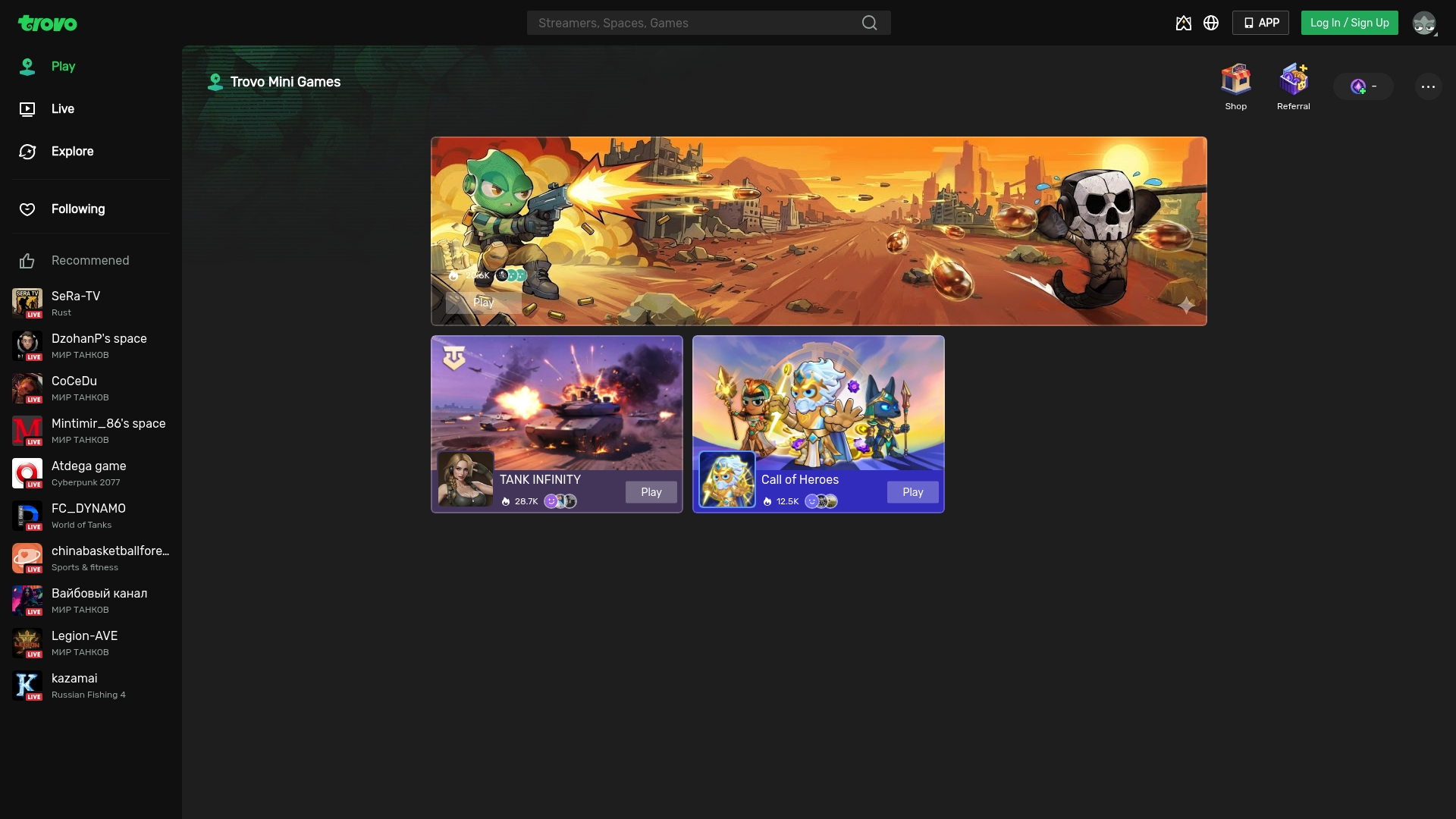 Trovo offers 1080p streaming, community spaces, and an in-app marketplace for items like Elixir. The platform also includes mini-games and dedicated streamer areas that encourage viewer participation and repeated visits.