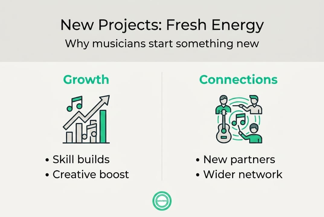 New projects are not crisis management. They are routine career maintenance. The musicians who thrive long-term treat launching new collaborations the way athletes treat cross-training. It is not a sign that your current pursuit is failing. It is how you stay sharp, connected, and genuinely excited about the work.
